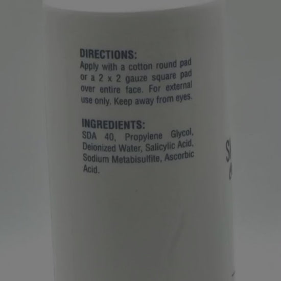Directions: Apply 2-3 drops of product on cotton round pad or a 2×2 gauze square pad over entire face.